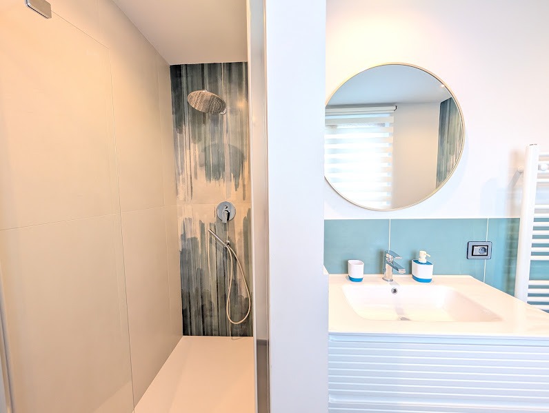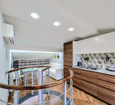 Attic apartment with kitchen, bedroom, and private bathroom, perfect for an independent stay.