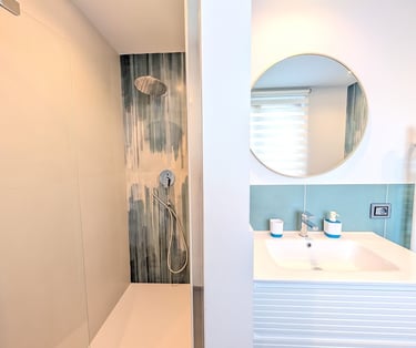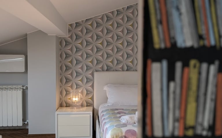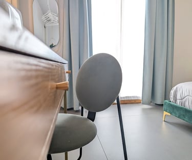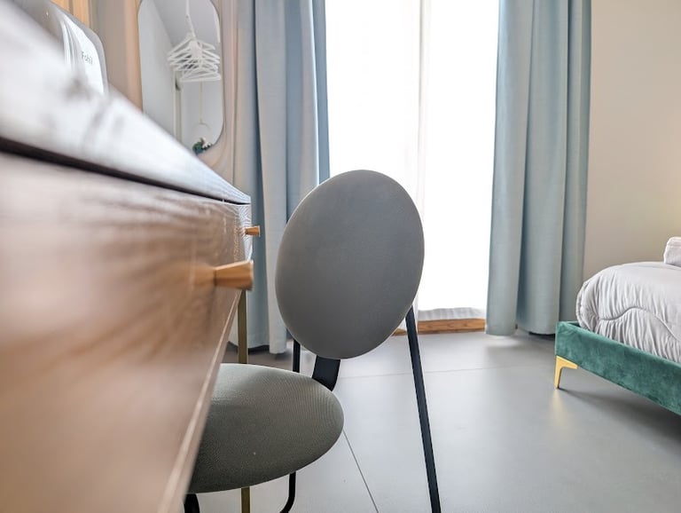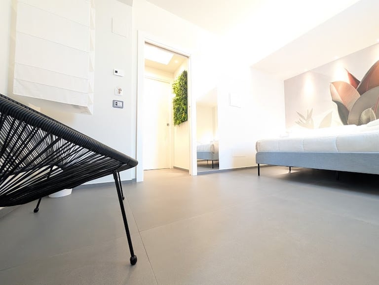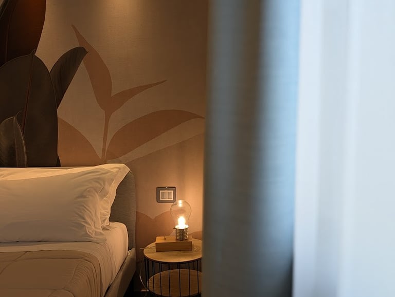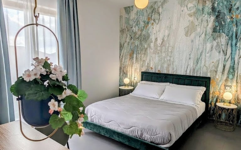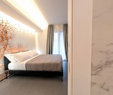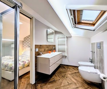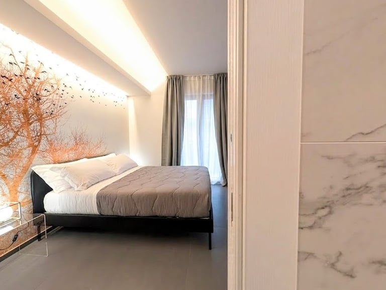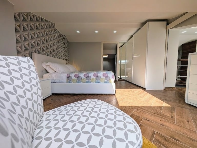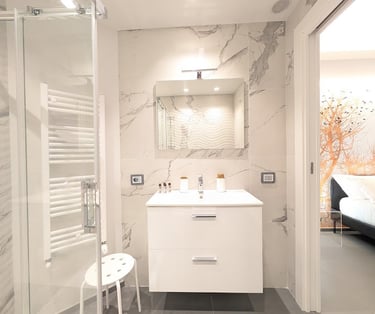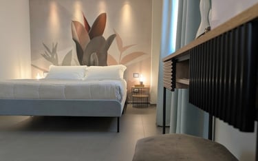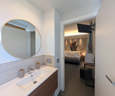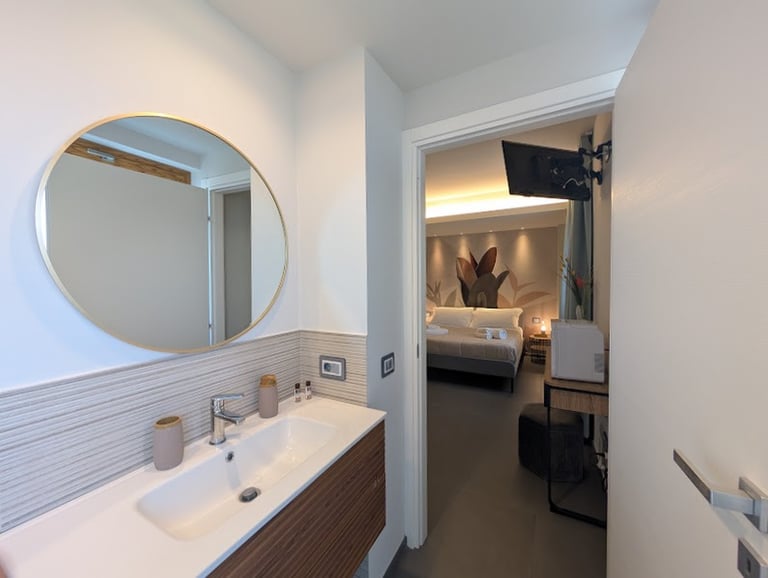 Bright room with private bathroom, contemporary design, and views of both the sea and mountains—ideal for a complete and evocative relaxing stay.